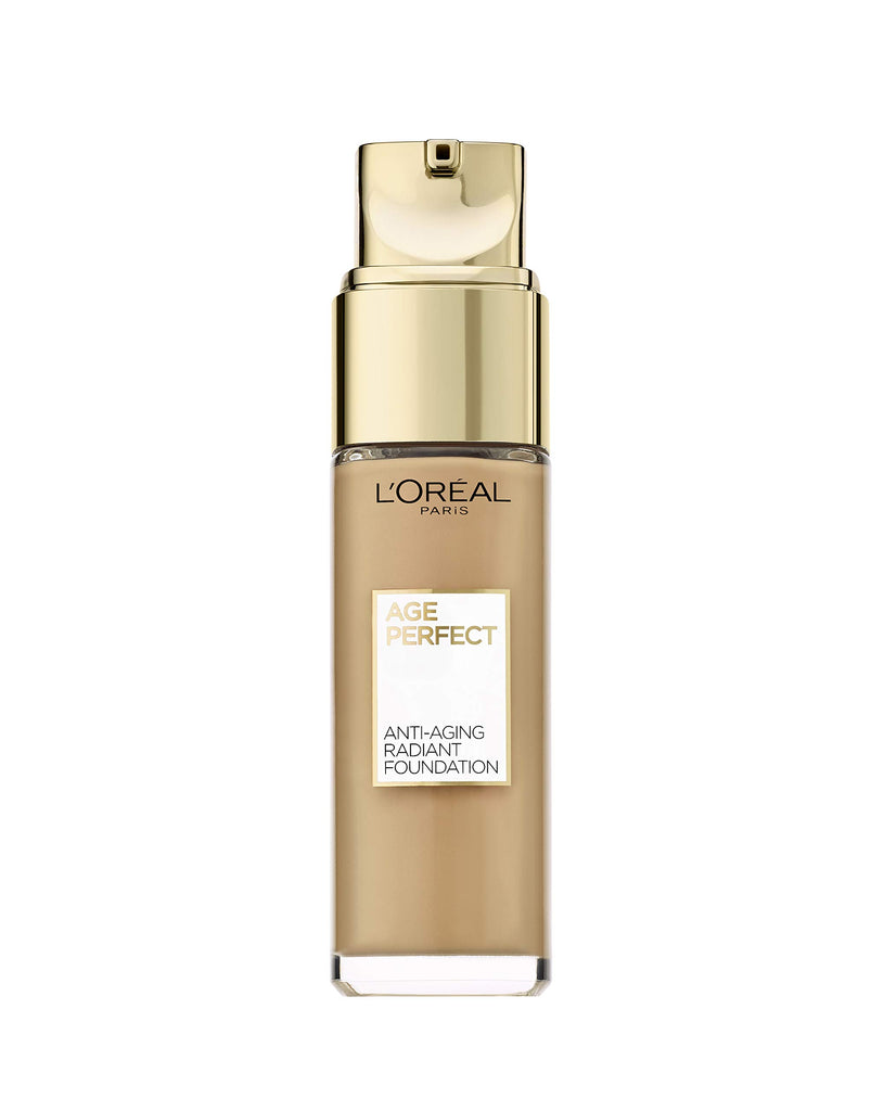 The Age Perfect make-up is optimally matched to mature, demanding skin. Thanks to the silky light texture, the liquid make-up can be easily distributed and does not settle in wrinkles. It gives the skin a healthy glow and youthful freshness. It makes irregularities, redness and dark spots disappear in no time at all and covers for a long time. For a perfect and natural looking complexion without mask effect. The formula with antioxidants and vitamins provides the skin with intensive moisture and also protects it from UV-A and UV-B rays with sun protection factor 17. The practical pump dispenser allows for easy dispensing. Discover the decorative cosmetic brand Age Perfect by L'Oréal Paris, specially developed for mature skin. With particularly moisturising and nourishing textures as well as expressive, modern colours, the products meet the needs of women who say, "The perfect age is now - here we are."