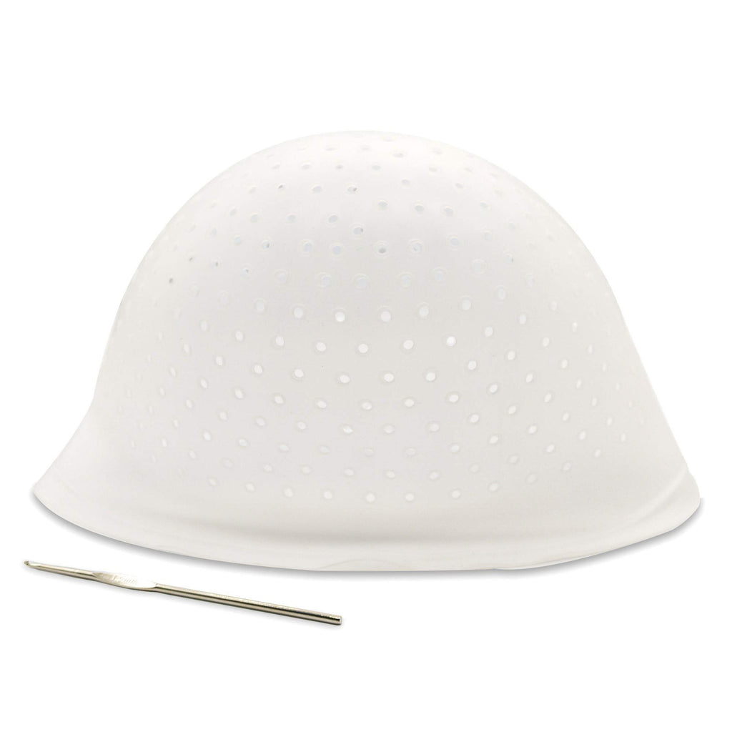 Losaria Holes Opened Highlight Cap Frosting Tipping Silicone Highlights Hairstyle Highlighting Cap for Hair Dyeing DIY at Home Salon Reusable with Hook Kit, White, 7.87*12.20