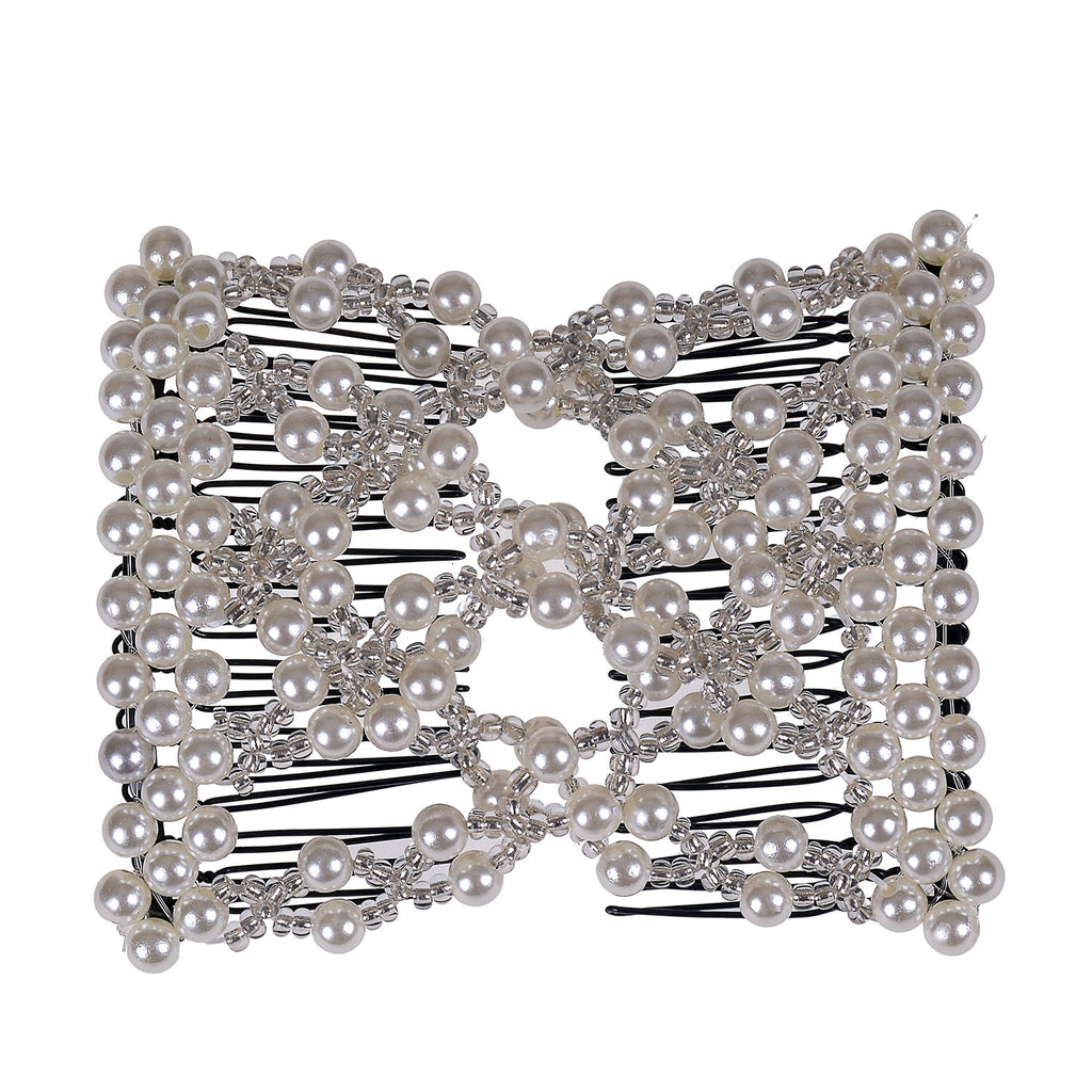Lovef Jewelry Easy Comb, Ez Magic Comb Stretchy Beaded Hair Comb In Green (White)