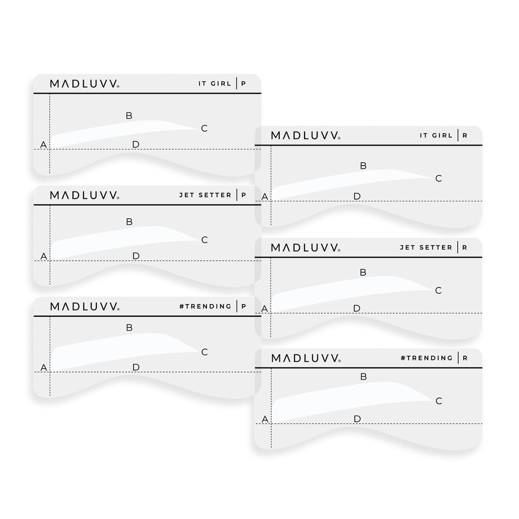 6 Piece Eyebrow Shaping Stencil Set: Achieve the perfect eyebrow shape, adding arch and fullness, with our brow shaping stencils. Each set includes 2 width sizes (regular and petite) and 3 fullness levels, making this the ideal set of brow stencils for permanent makeup artists to keep on hand for their microblading clients who have natural eyebrows ranging from thin to thick. Great for applying brow makeup to women, men, and everyone. These durable plastic reusable eyebrow stencils make for easier, faster, and more precise brow mapping and semipermanent eyebrow tattooing. While ideal for eyebrow professionals, this set is also great to use with standard brow pencils, and MADLUVV makes it easy for anyone to achieve the perfectly sculpted eyebrow shape daily with our brow stamps, specially designed to use with these stencils. Choose the stencil set with the arch height and fullness level that fits you or your clients and put your best brow forward every time.