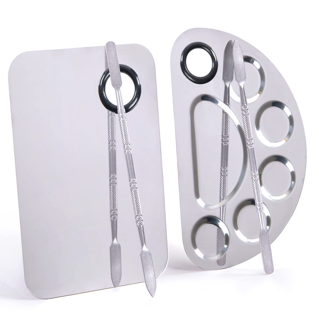 Makeup Palette, Makeup Mixing Palette, Stainless Steel Metal Foundation Palette with Spatula Artist Tool for Mixing Foundation Nail-Art, Cosmetic Mixing Makeup Palette, Makeup Plate, 6×4"/Silver/2pcs