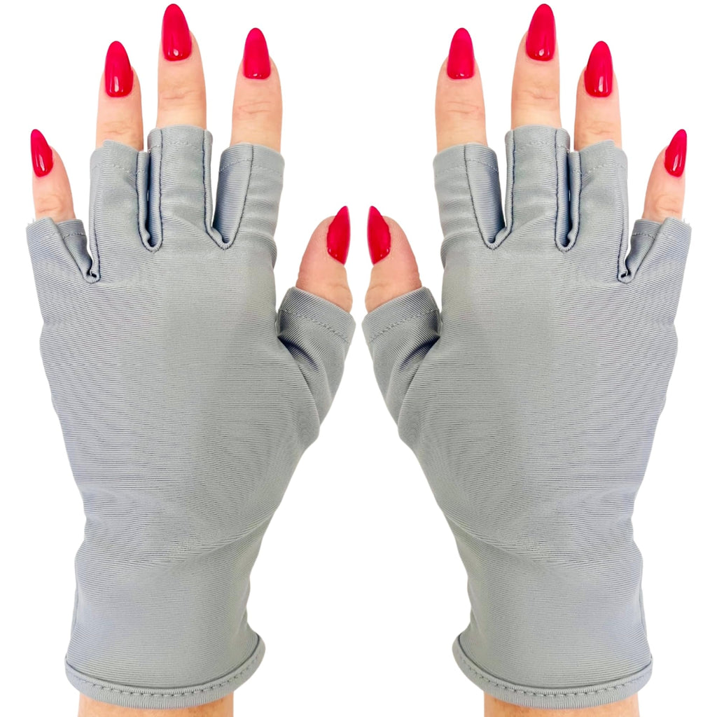 ManiGlovz - Anti UV Gloves for Gel Manicures Using Gel Lamp Dryers, Driving, Lounging and More, Fingerless Gloves That Shield Skin from The Sun and Nail Lamp, Outdoor Gloves, Pink Palm Print
