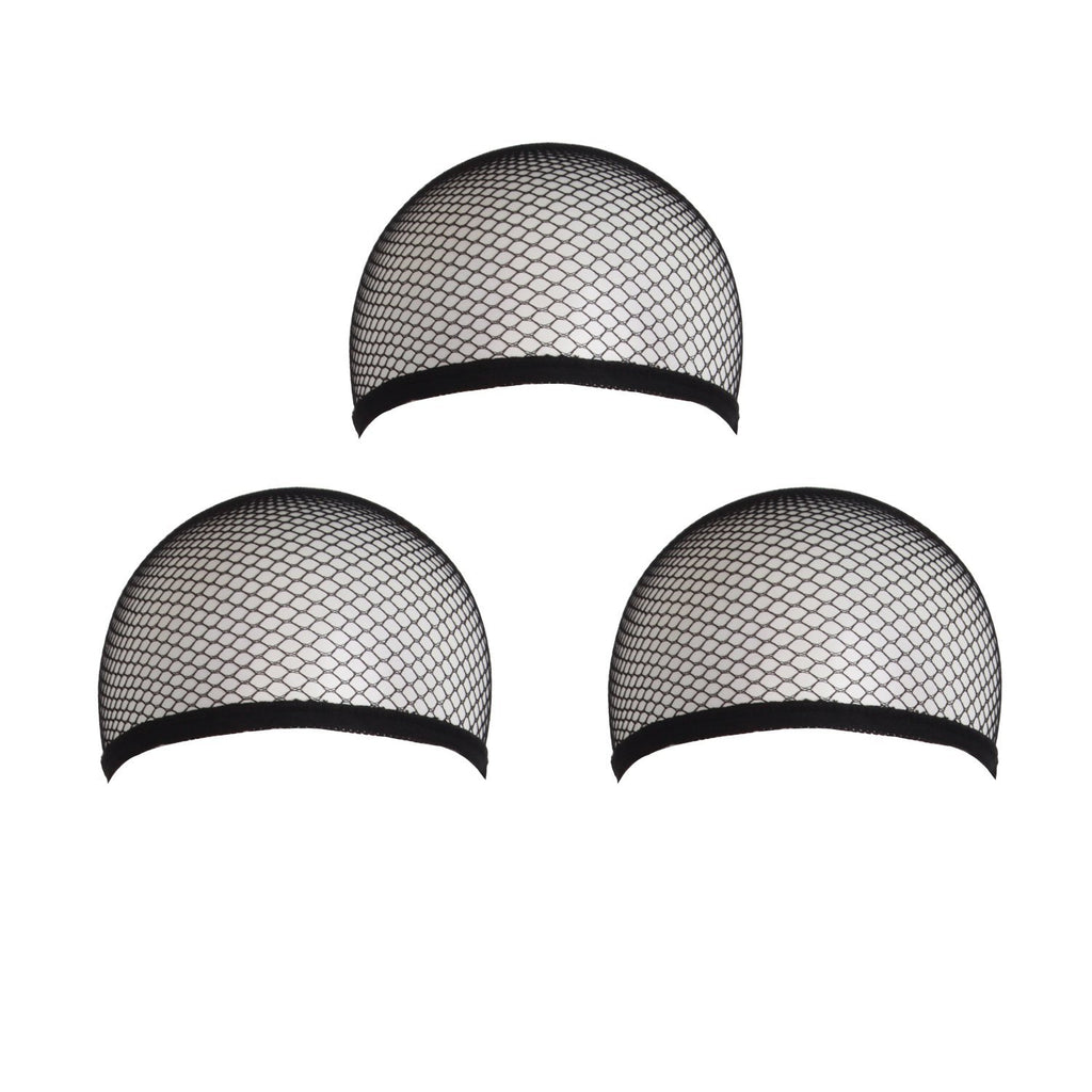 MapofBeauty 3 Pieces Elastic Hair Mesh Net One Size Wig Caps(Black)