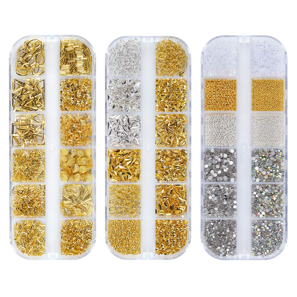 MEILINDS Nail Art 3D Studs Gold Metal Moon Rivet Punk Jewels Manicure Decorations 3 Set