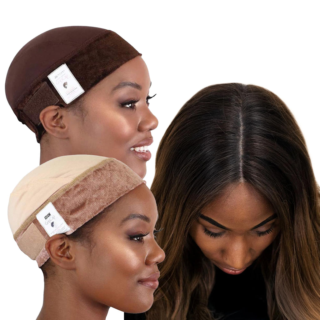 Milano Collection GripCap for Women, 2 in 1 Wig Grip Band Plus Wig Cap for Lace Wigs & Frontals, Comfortable Breathable Fabric for Wigs, Chocolate Brown & Nude, 2 Pack