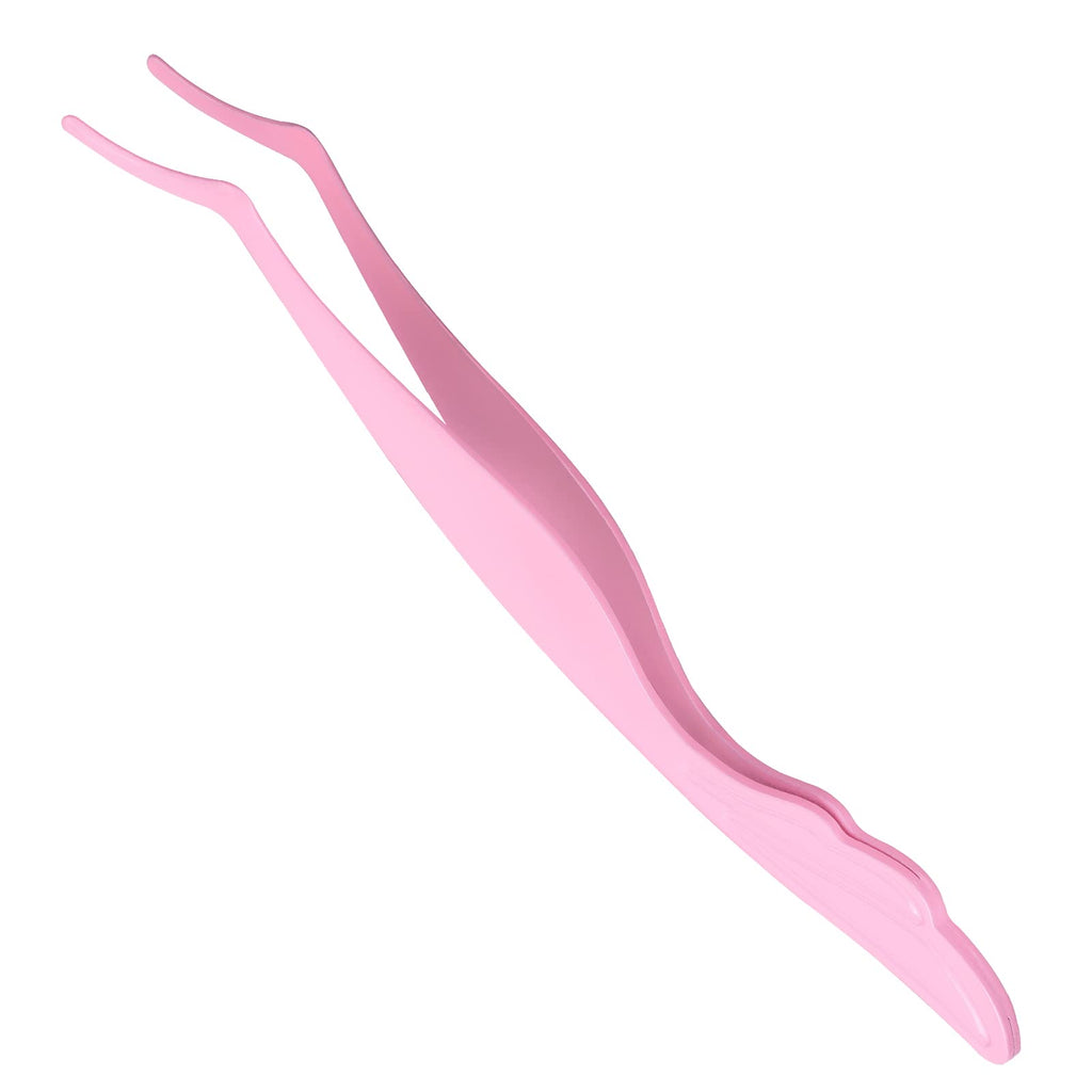Miuffue False Eyelash Applicator Tool Stainless Steel Curved Eyelash Tweezers for Strip Lashes, Pink