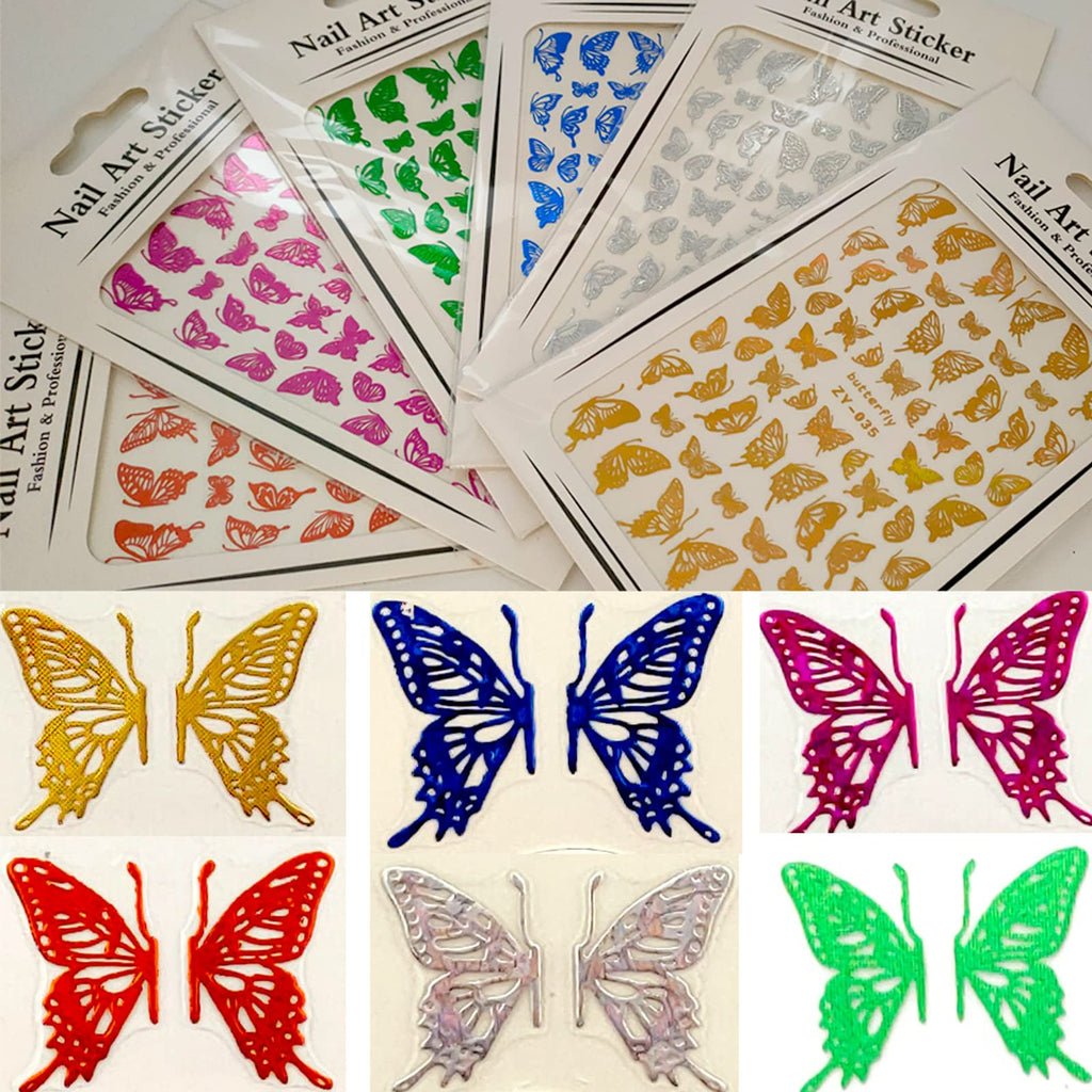Nail Art Stickers Butterfly Nail Decals Self-Adhesive 3D Nail Decals Laser Butterfly Stickers Decals for Nail Art DIY Decoration