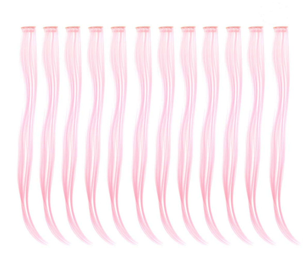 Pink : SWACC 12 Pcs Straight One Color Party Highlights Clip on in Hair Extensions Colored Hair Streak Synthetic Hairpieces (Pink)