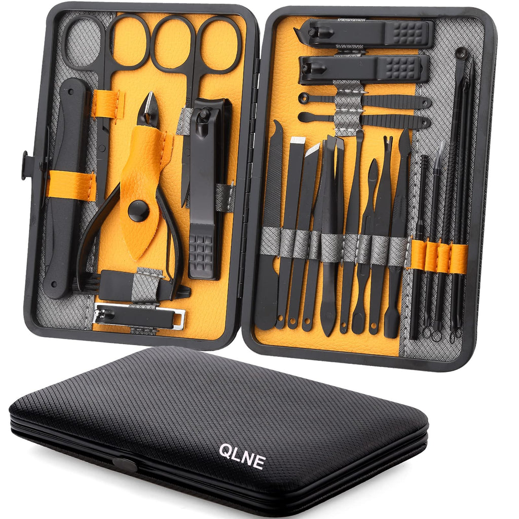 QLNE Professional 25PCS Nail Clippers Set, Stainless Steel, Yellow/Gray/Black, Modern Style, Men & Women