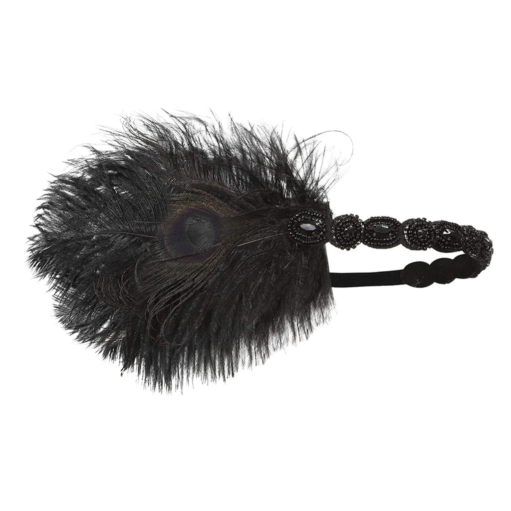 Roaring Art Deco 1920s Headpieces for Women Flapper Headband 20s Gatsby Costume Peacock Hair Accessories 06Black