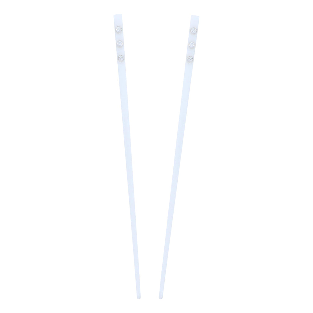 Set of 2 Hair Sticks with 3 Diamonds Chopsticks - White