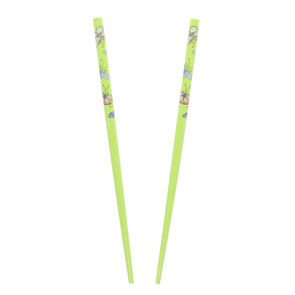 Set of Wooden Hair Sticks With Butterflies Chopsticks Hair Pin - Green