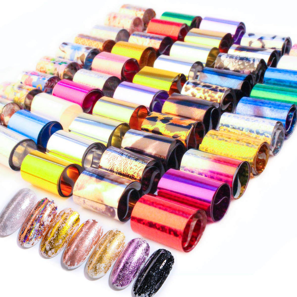 SILPECWEE 50 Sheets Cheetah Print Nail Foil Stickers Set Solid Color Laser Flower Design Nail Transfer Decals Starry Sky Star Manicure DIY Tools