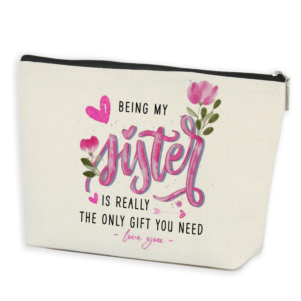Sister Gifts Makeup Bag Sister Birthday Gift Ideas, Funny Sister Gifts from Sisters Brother Siblings Makeup Zipper Pouch Bag, Wedding Graduation Gifts Christmas Birthday Gifts for Women Her Friends, Multicolor0710, 9.7" W x 7" H