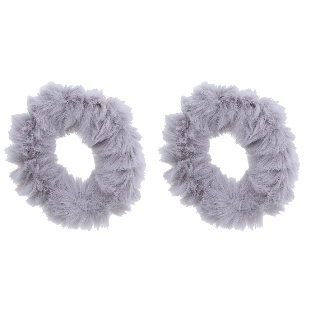 Small Fuzzy Fur Scrunchies Furry Pony Holder - Set of 2 - Light Grey