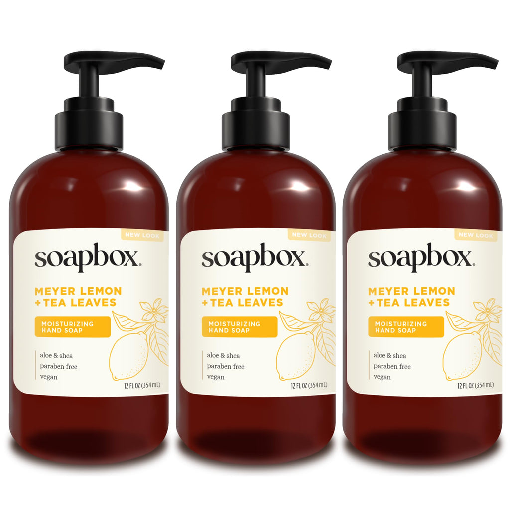 Soapbox Liquid Hand Soap, Meyer Lemon & Tea Leaves, Moisturizing Hand Wash for Kitchen and Bathroom, 12 Ounce Pump Bottles (Pack of 3)