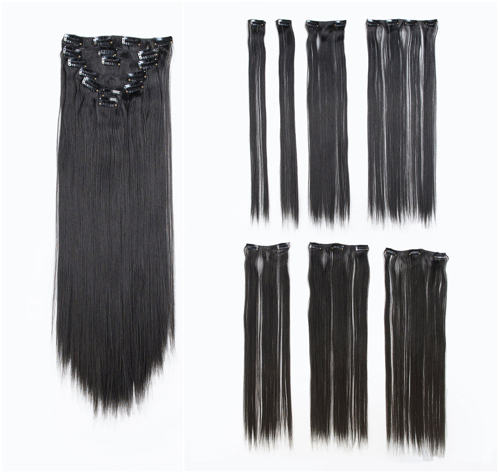 Swacc Women 22 Inches Straight Full Head 7 Separate Pieces Heat Resistance Synthetic Hair Clip In Hair Extensions (1 B Off Black)