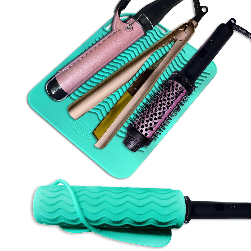 Sygile 11" X 7.5" Larger Size Heat Resistant Silicone Travel Mat, Anti-heat Pad for Hair Straighteners, Curling Irons, Flat Irons and Other Hot Styling Tools - Mint Green