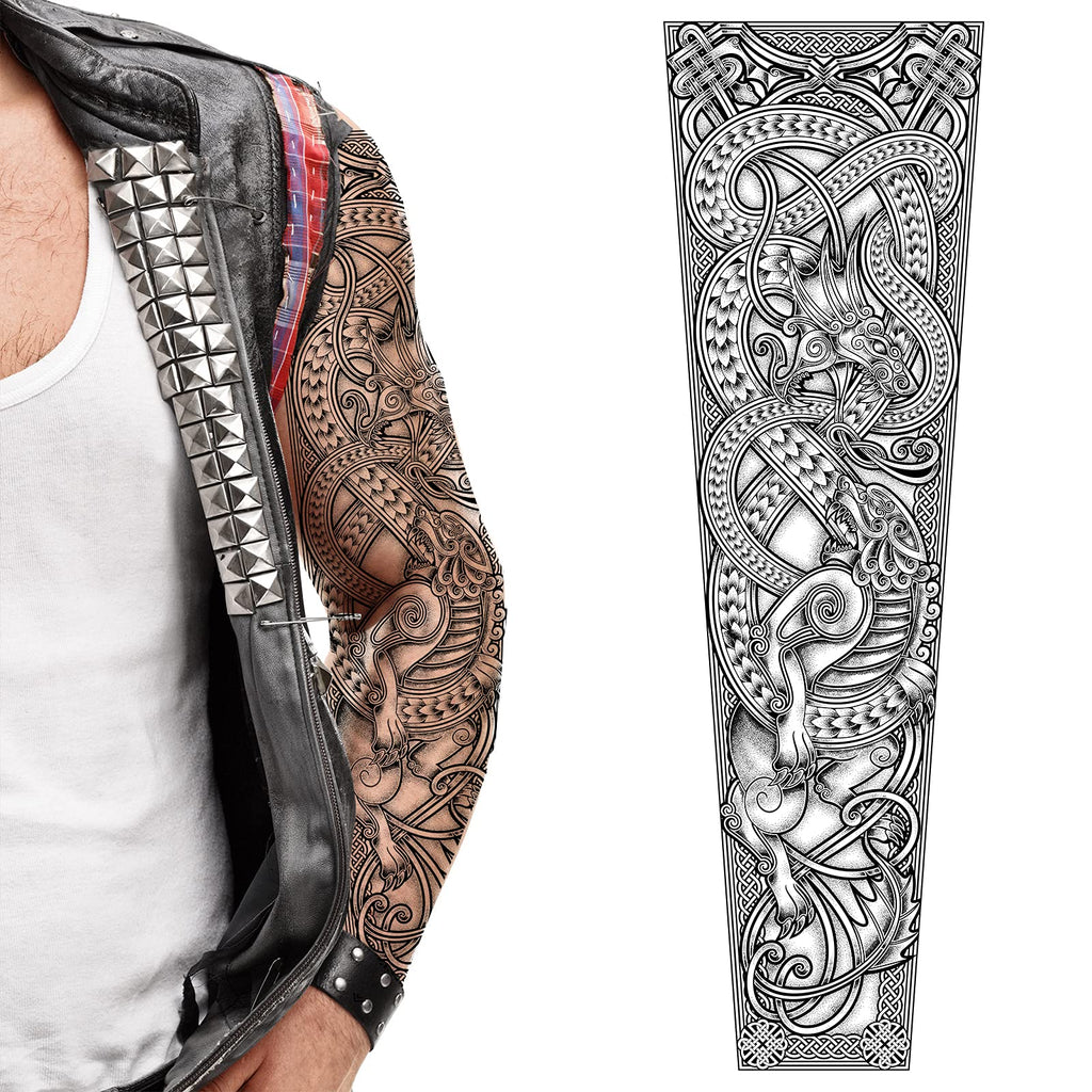 Tatodays 2x Temporary tattoo dragon full arm body art stickers Nordic compass viking Celtic tribal middle ages medieval full adults kids men women arm leg sleeves fancy dress cosplay
