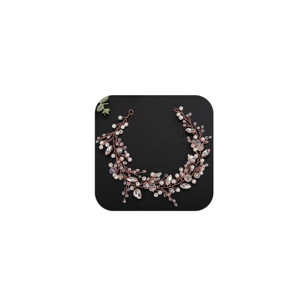 Teyglen Crystal Pearl Wedding Headband Bridal Rhinestone Crystal Hair Vine Hair Accessories for Bride Handmade Black Blue Pink Red Beads Hair Pieces Boho Pearls Crystal Headpieces for Women Girl Party