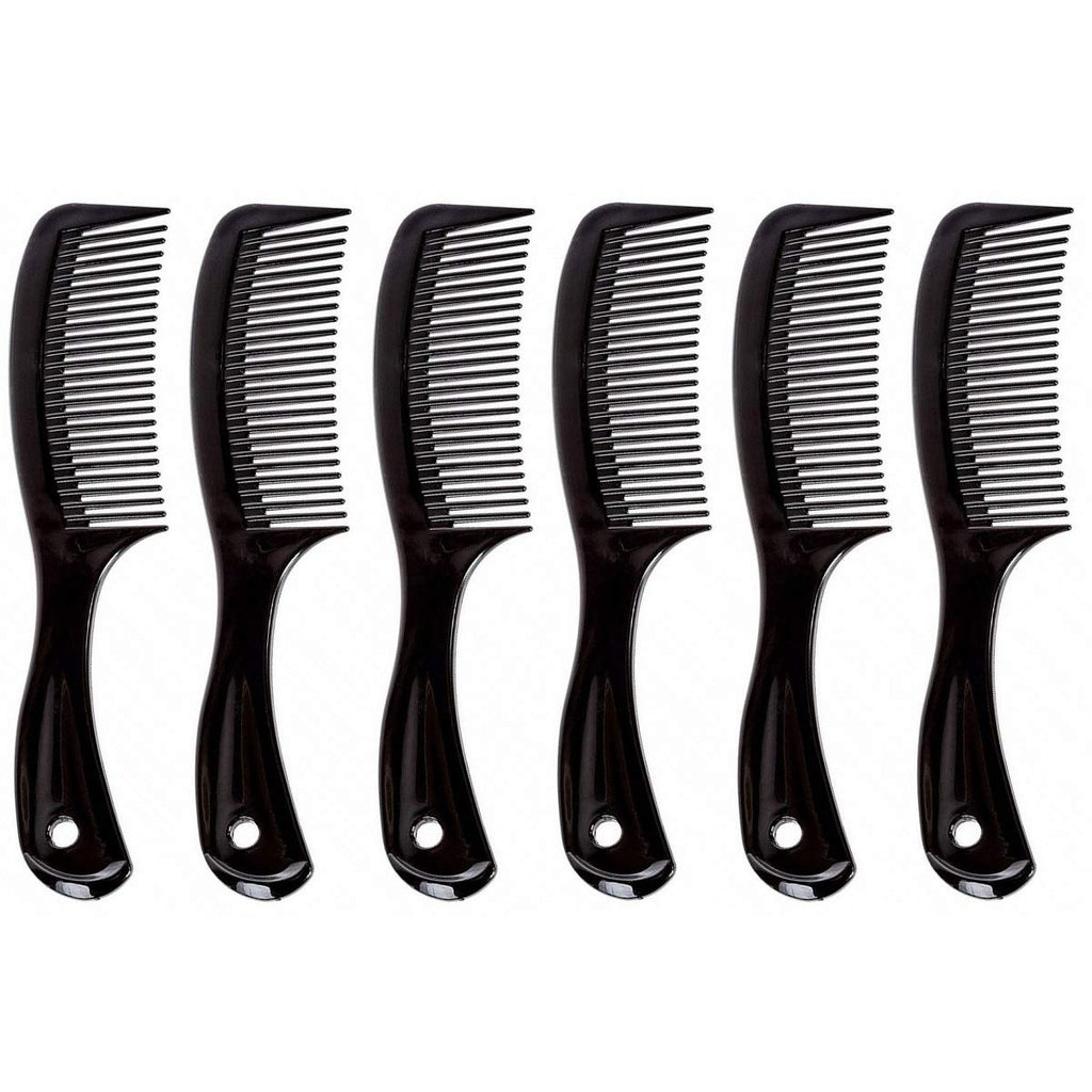 Travel Size Wide-Tooth Handle Comb, 6.5” Long, Black (6 Pack)