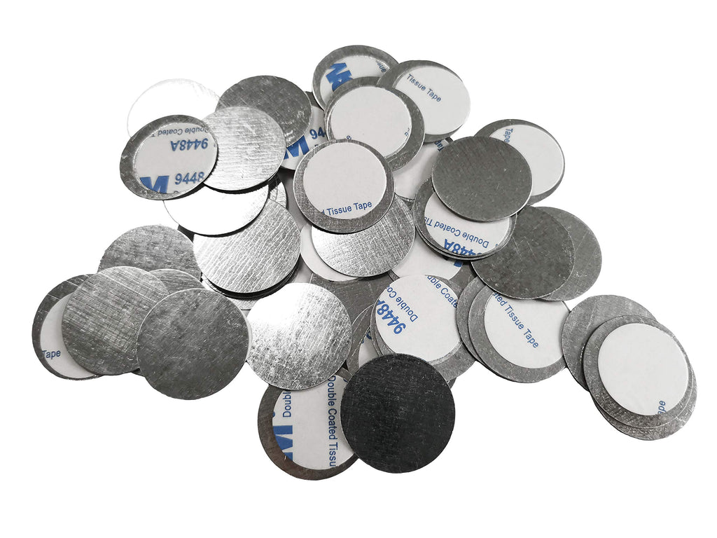 Dimensions is about 25mm. These are not magnets, they are metals that can be attracted to the magnetic things. You can stick one of these stickers to the bottom of non-magnetic makeup pans, and it will then stick to magnetic makeup palette. These metal stickers are designed to work with magnetic makeup palette, they will not adhere to if your palette is made of plastic or non-magnetic material.