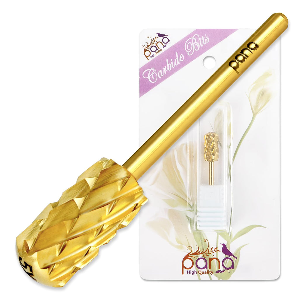 USA Pana 3/32" Safety Nail Carbide - Smooth Round Top Large Barrel Head for Electric Dremel Drill Machine - Grit Size: (5XC to Extra Fine) (5X Coarse, Large Barrel - Gold)