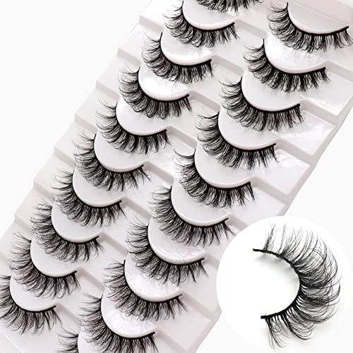 Veleasha Russian Strip Lashes DD Curl False Eyelashes Fluffy Wispy Faux Mink Lashes 10 Pairs Pack (D05)
