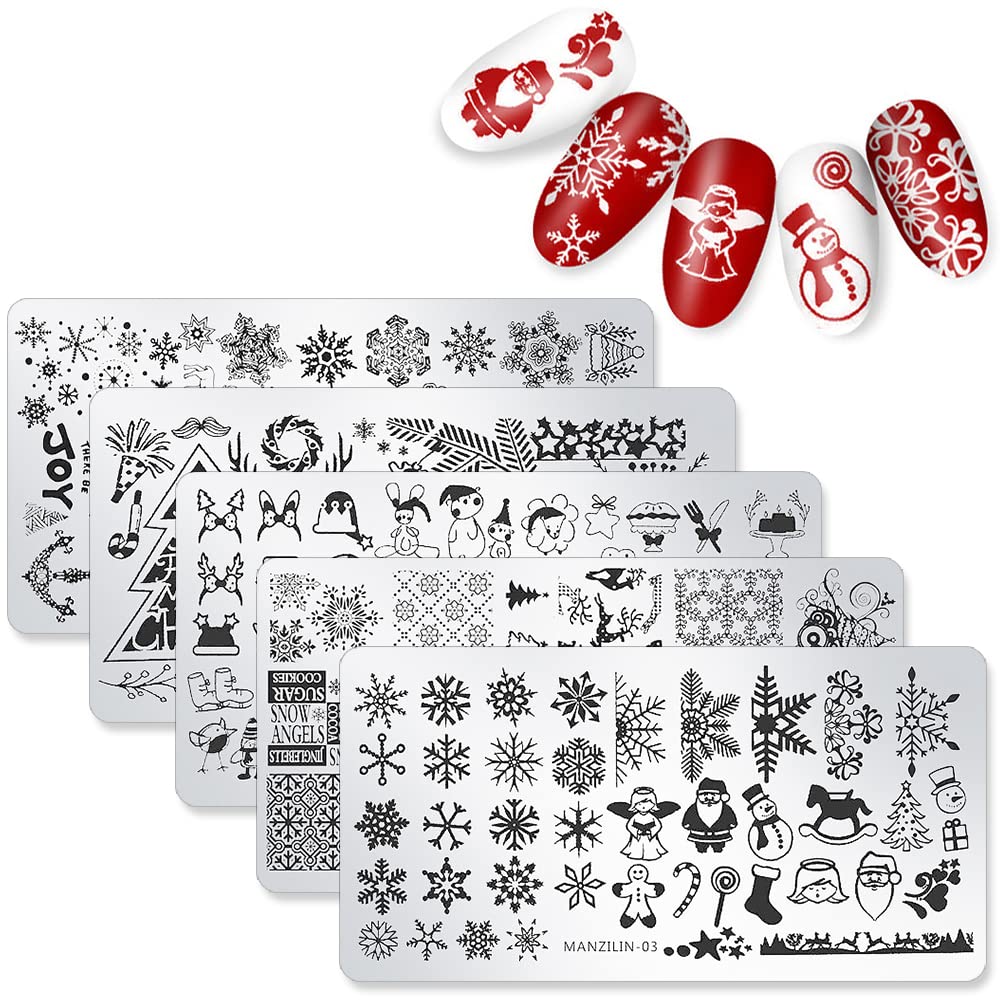 WOKOTO 5Pcs Christmas Nail Art Plates Stamping Set Snow Winter Nail Art Image Plate Manicure Template Nail Art Tools
