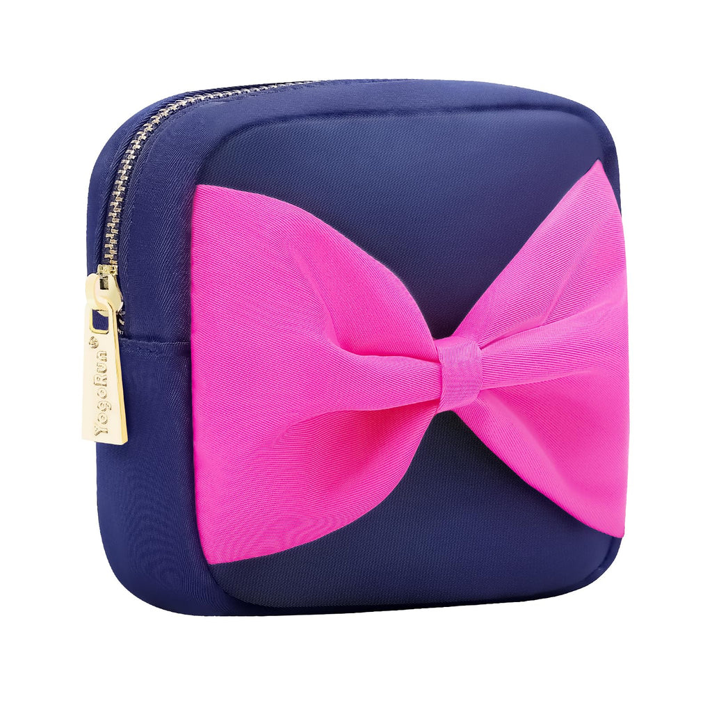 YogoRun Mini Makeup Bag Small Cosmetic Bag for Purse Stuff Bag Coin Purse Stoney Clover Dupes Mini Toiletry Bag Jewery Pouch Period Bag Purse Essentials Wifey Gifts (S, NavyBlue-Bow), NavyBlue, S, Preppy