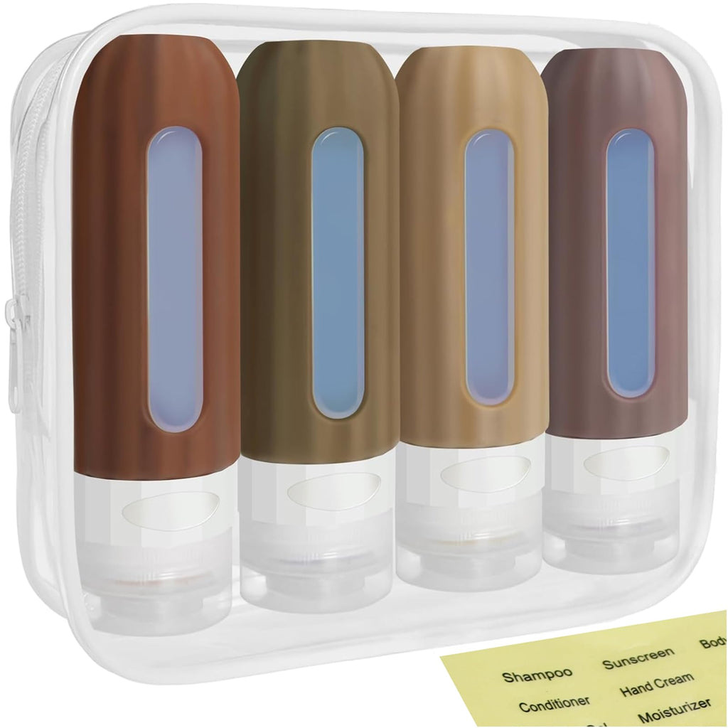 ZVAIS Travel Bottles for Toiletries, Portable Travel Bottles, Leak Proof Squeezable Silicone Travel Size Containers, Travel Accessories with Clear Toiletry Bag(khaki), khaki